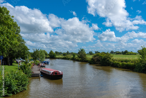 Fototapeta premium Tourist boat at the pier in Greetsiel