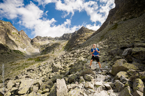 Fototapeta premium Tourist going to Rysy Tatra mountains