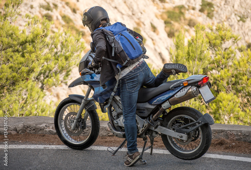© M-Production, Fototapeta premium Tourist using motorcycle in mountains.