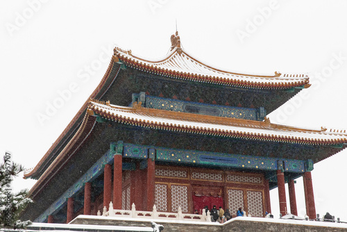 © cherryhai, Obraz premium tourist visit Forbidden city in winter under snow