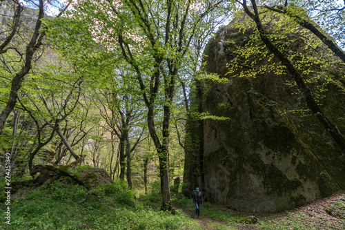 Fototapeta premium Tourist walks in the canyon of Birtvisi
