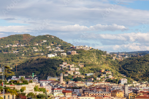 Fototapeta premium Touristic City by the Sea. Salerno, Italy. Aerial View. Cityscape and...