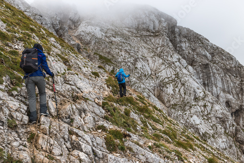 Fototapeta premium Tourists conquer Triglav, Slovenia