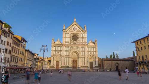 Fototapeta premium Tourists on Piazza di Santa Croce timelapse hyperlapse with Basilica di Santa...