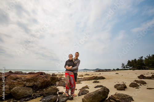 Fototapeta premium Tourists Quan Lan island Halong Vietnam