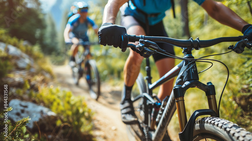 © RGEN PHOTO, Fototapeta premium Tourists riding bicycles in the mountain