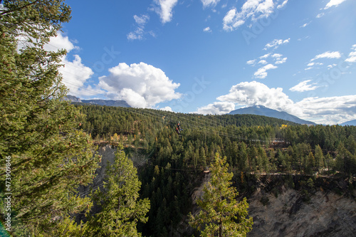Fototapeta premium Tourists zipling at Golden Skybridge in British Columbia, Canada