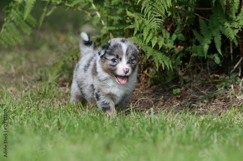 © Dogs, Fototapeta premium tout petit chiot berger australien se baladant dans le jardin