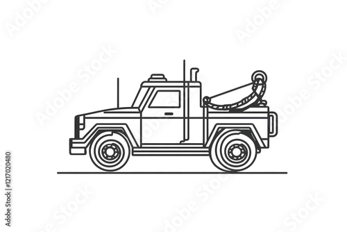 Naklejka premium Tow Truck Design: A Detailed Illustration of a Robust Vehicle with Winch and Rope for Roadside Assistance