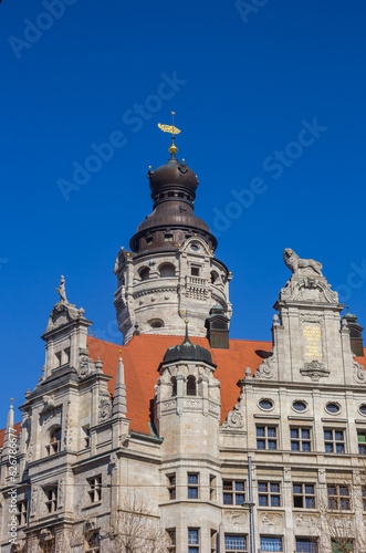 Fototapeta premium Tower and decorated facade of the new town hall in Leipzig, Germany