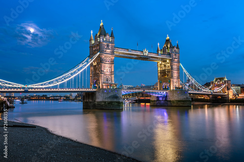 Obraz premium Tower Bridge and Thames River Lit by Moonlight at the Evening, L