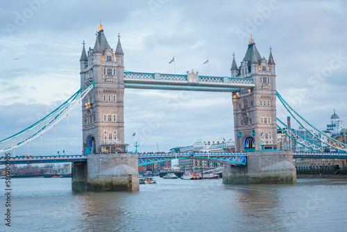 Fototapeta premium tower bridge in london at evening, cloudy daytime