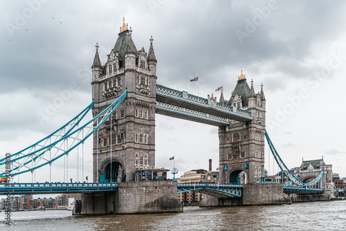 Fototapeta premium Tower Bridge in London - Cloudy day over the Thames river in the UK