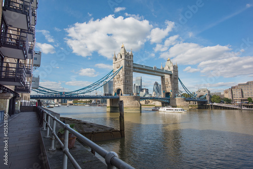 Obraz premium Tower Bridge, Thames Path, and City Skyscrapers from the South Bank of the...