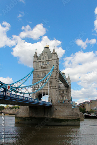 Fototapeta premium Tower Bridge with the blue sky and clouds on a bright sunny day in spring,...