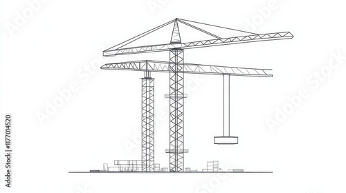 © Elchin Abilov, Fototapeta premium Tower construction crane line art vector on white background