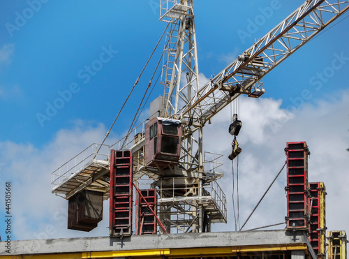 Fototapeta premium Tower crane. Lifting crane. Construction site. Kazakhstan. 2021.