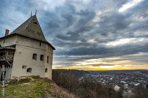 © onyx124, Fototapeta premium Tower of a medieval castle at sunset