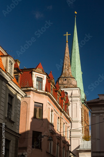 Fototapeta premium Tower of the church building in Riga, Latvia