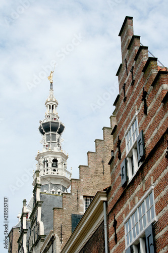 © Joop Hoek, Fototapeta premium Tower of the former cityhall surrounde by crow-step gables