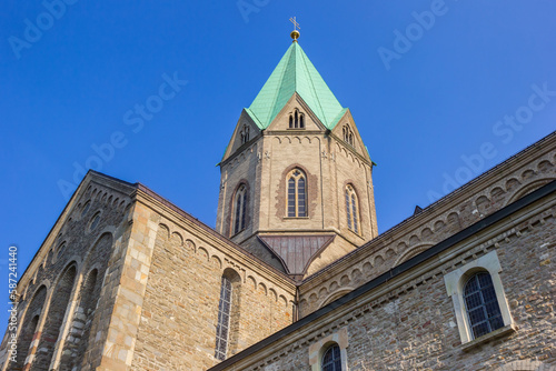 Fototapeta premium Tower of the historic Ludgerus church in Essen-Werden, Germany