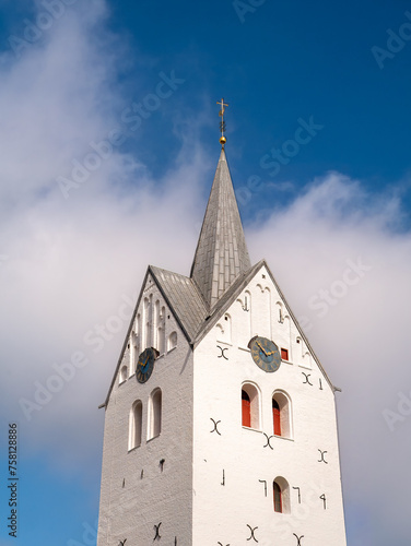 © TasfotoNL, Fototapeta premium Tower of white Gothic brick church in Thisted, Nordjylland, Denmark