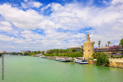 © Viktoriia F, Fototapeta premium Tower Torre del oro in Seville, Andalusia, Spain