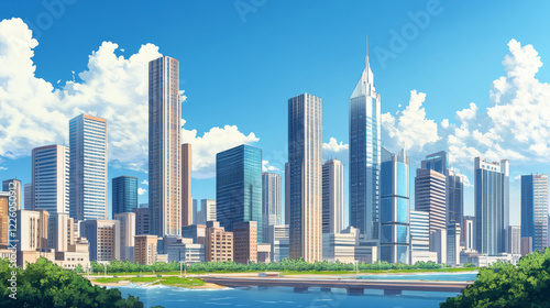 © Farid, Fototapeta premium Towering buildings line the skyline, showcasing modern architecture.