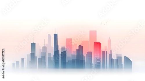 © Somsom, Naklejka premium Towering cyberpunk inspired skyline with neon illuminated skyscrapers and high rise buildings disappearing into the futuristic urban landscape Modern