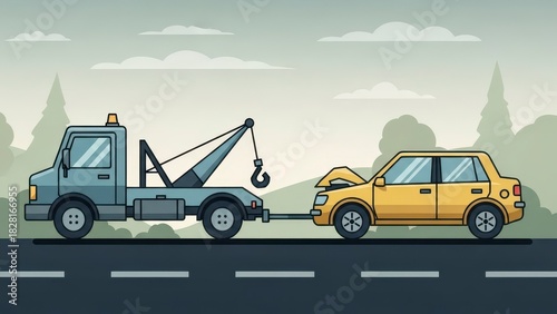 Fototapeta premium Towing a Damaged Car After an Accident on the Road.