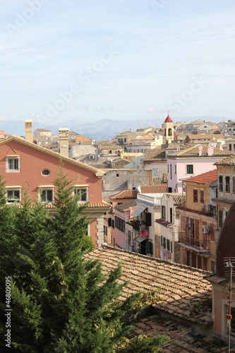 Obraz premium town buildings churches streets and castle on the island of Corfu in Greece