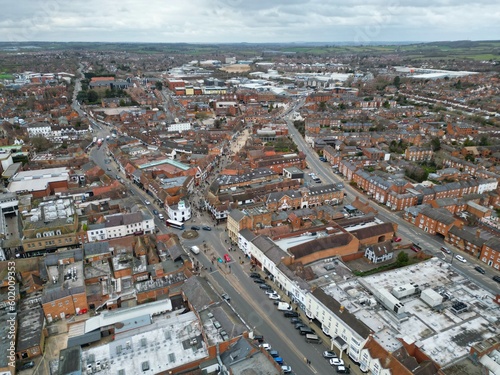 Fototapeta premium Town centre Stratford upon Avon England drone aerial view
