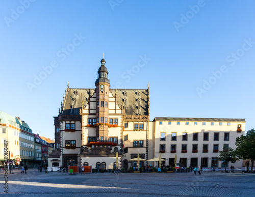 © oxie99, Naklejka premium Town Hall and Market Square with fountain in Schweinfurt. Bavaria. Germany