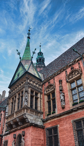 © Sergej Borzov, Obraz premium Town hall on Market square in Wroclaw Old Town.