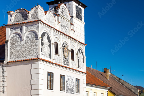 © Richard Semik, Fototapeta premium Town hall on square in Volyne, Southern Bohemia, Czech Republic