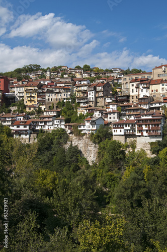 © varbenov, Fototapeta premium Town houses built on mountainside slope landscape