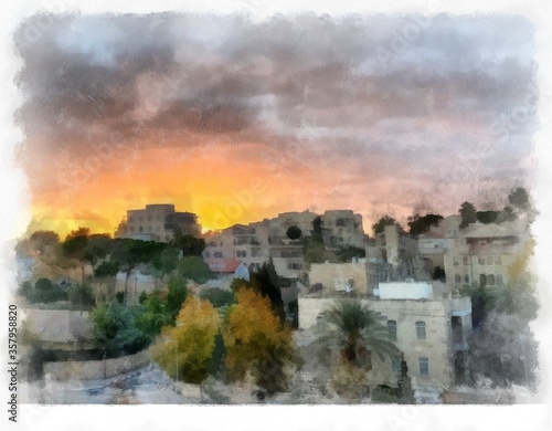 © Yoram Daniel , Fototapeta premium town in the sunset