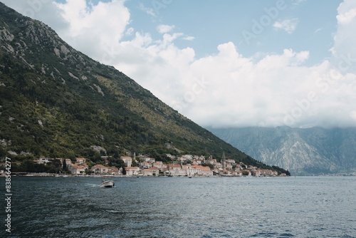 Fototapeta premium Town Perast on the mountain in Montenegro