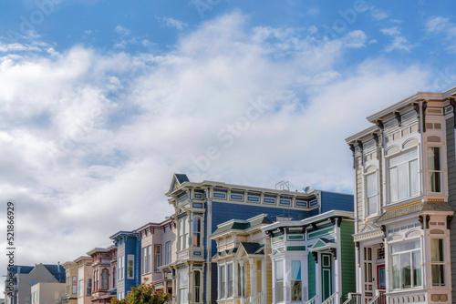 © Jason, Fototapeta premium Townhomes with colorful wood vinyl sidings against the sky background