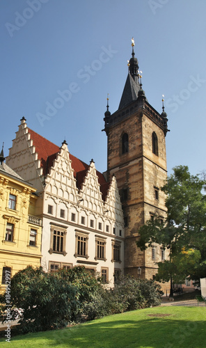 © Andrey Shevchenko, Fototapeta premium Townhouse of New town at Charles square in Prague. Czech Republic