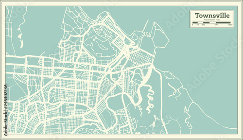 © BooblGum, Fototapeta premium Townsville Australia City Map in Retro Style. Outline Map.