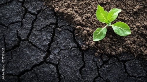 Naklejka premium Toxic fertilizer applied to a drought-stricken farm. Featuring crop damage and soil erosion