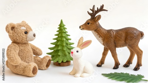 © artisttop, Fototapeta premium Toy Animals and Tree on White Background