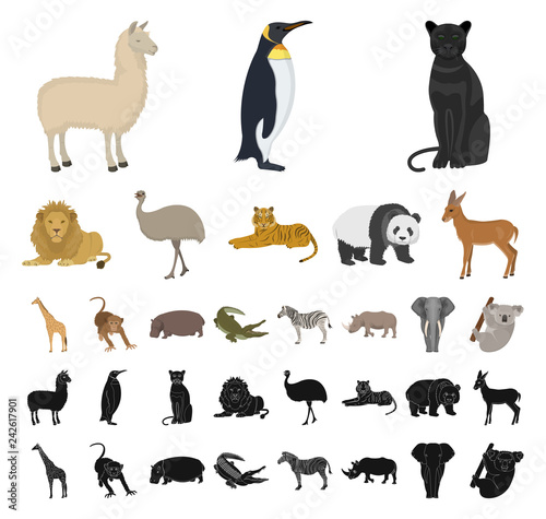 © pandavector, Fototapeta premium Toy animals cartoon, black icons in set collection for design. Bird, predator and herbivore vector symbol stock web illustration.