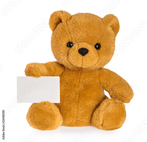 © azure, Fototapeta premium toy bear holding empty board isolated white background