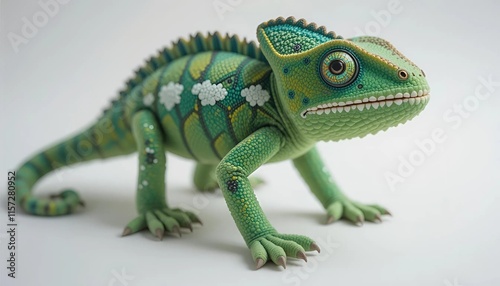 © Lesovichka, Obraz premium Toy chameleon on a white background