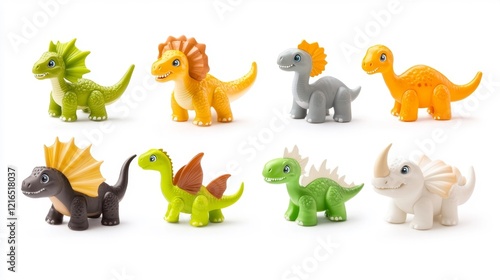 © Stocker, Naklejka premium Toy Dinosaur Set on White Background. Generative AI