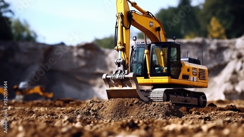 © Fotograf, Fototapeta premium Toy excavator sitting on a pile of dirt, suitable for construction themes