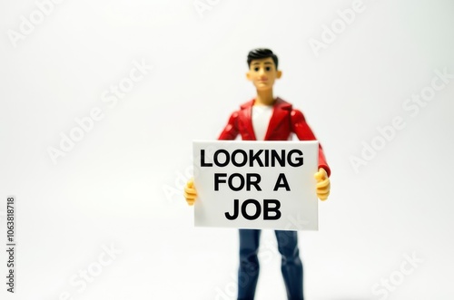 © ALEXEY FILATOV, Fototapeta premium toy man holding a sign with the text (I'm looking for a job)