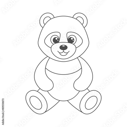 Naklejka premium Toy Teddy bear Panda sitting. Coloring page for kids.